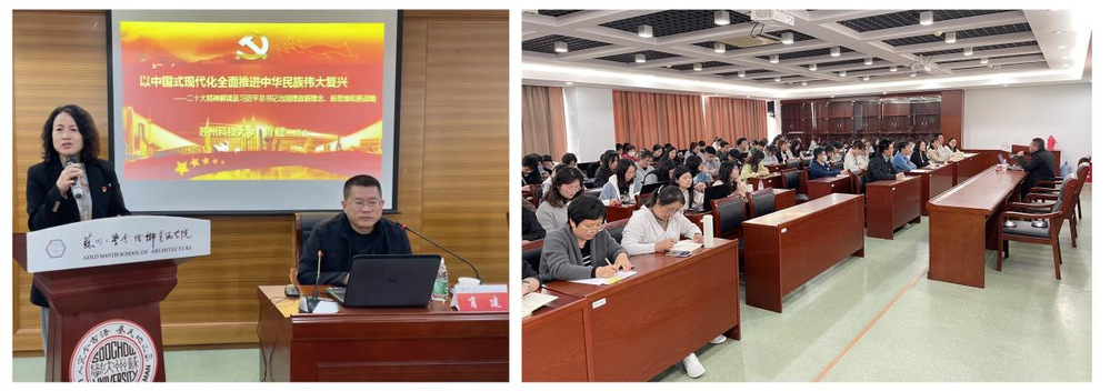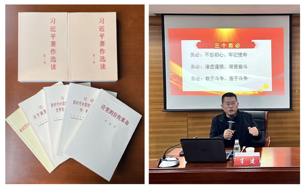 邀请苏州市委党史学习教育宣讲团成员、苏州党史协会副秘书长、苏州科技大学肖建博士作题为“以中国式现代化全面推进中华民族伟大复兴”学习贯彻习近平新时代中国特色社会主义思想主题教育辅导报告。肖建博士从“以为民为核心价值、以担当为政治责任、以发展为第一要务”切入,生动系统地阐述习近平总书记治国理政新理念、新思维和新战略,引用张思德为人民服务、西柏坡“进京赶考”等党史故事,融合当前时政热点,有力解读党的二十大报告。