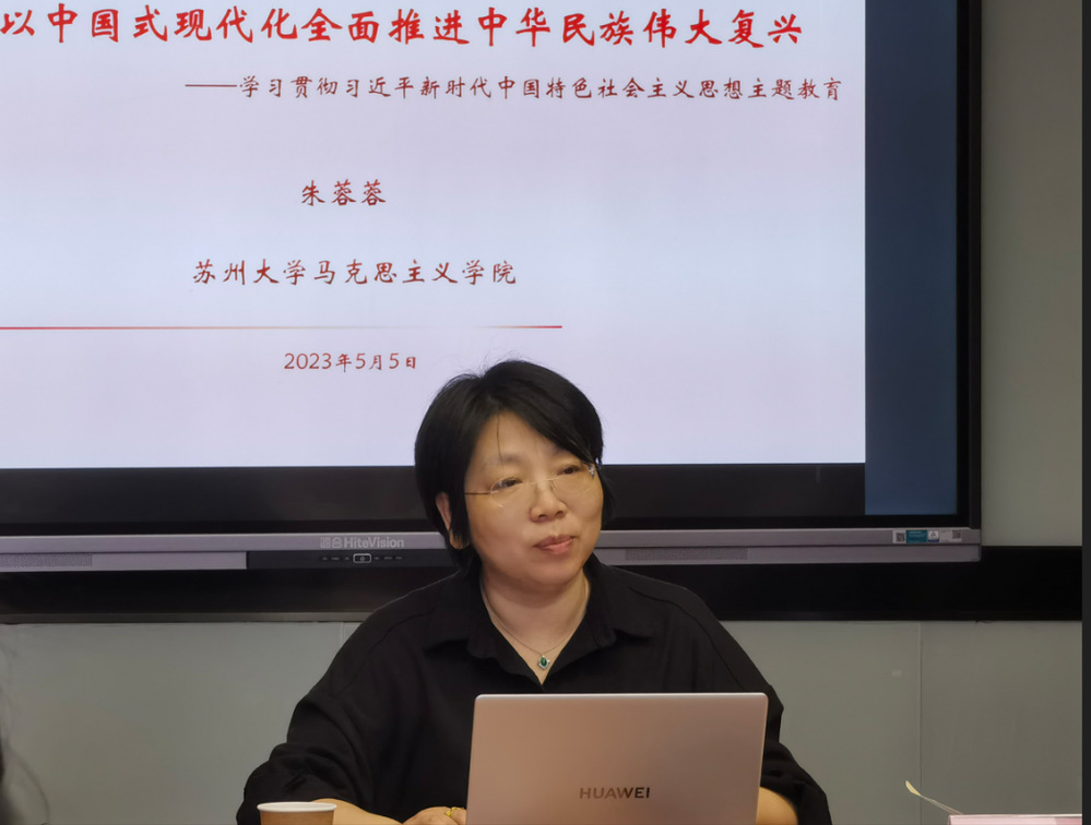动员会后,马克思主义学院副院长朱蓉蓉教授应邀作“以中国式现代化全面推进中华民族伟大复兴”专题辅导报告。朱教授回顾了中国式现代化的实践历程,阐释了中国式现代化的鲜明特色和战略安排,并对中国式现代化的重大原则进行了解读。“中国式现代化是中国共产党和中国人民长期实践探索的成果,是一项伟大而艰巨的事业。惟其艰巨,所以伟大;惟其艰巨,更显荣光。”我们要更加紧密地团结在以习近平同志为核心的党中央周围,全面贯彻习近平新时代中国特色社会主义思想,弘扬伟大建党精神,以“功成不必在我、功成必定有我”的气魄和“勇挑大梁走在前”的斗志,把中国特色社会主义伟大事业不断推向前进。