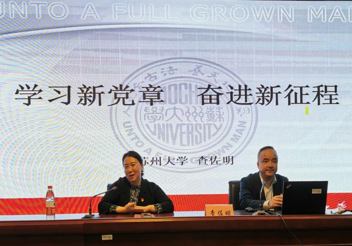 5月3日晚,文学院、金螳螂建筑学院分党校在文科楼5339会议室举办2023年春季学期培训班专题党课,邀请校党委常委、副校长查佐明作《学习新党章,奋进新征程》专题党课。文学院、金螳螂建筑学院党委理论学习中心组成员、分党校春季学期培训班全体学员参加了学习,活动由文学院党委书记宋清华主持。