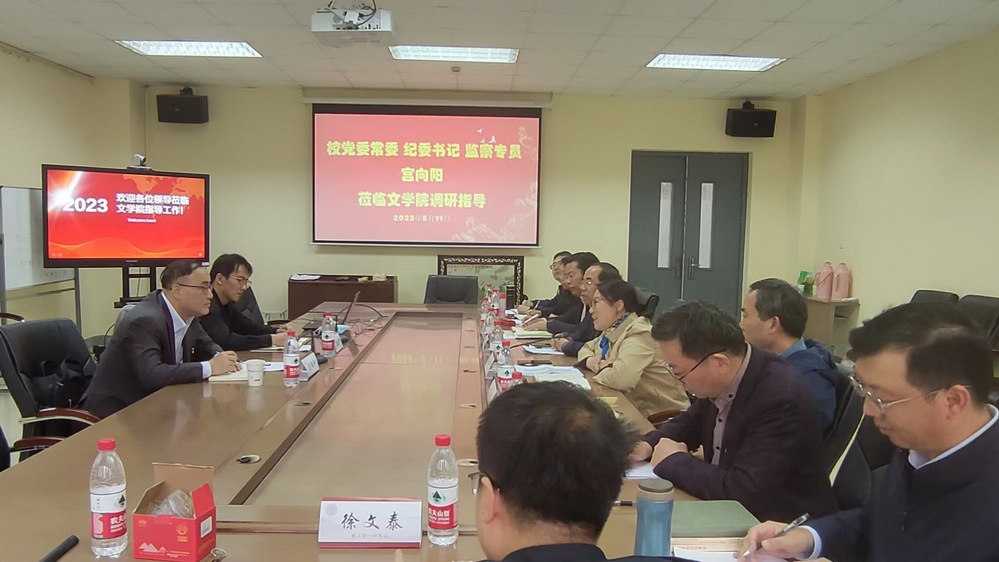 5月11日下午,校党委常委、纪委书记、监察专员宫向阳到文学院指导调研,校纪委办公室主任杨志卿、学院党政班子全体成员、党委委员、教工党支部书记一同参加调研,调研会由学院党委书记宋清华主持。