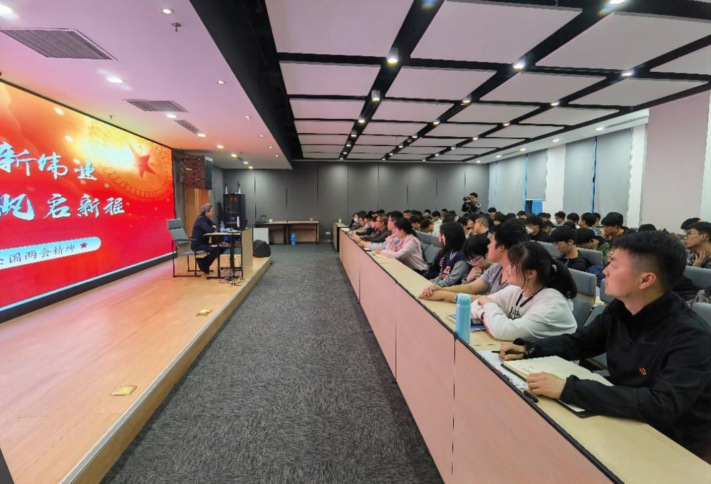 为深入学习贯彻习近平新时代中国特色社会主义思想主题教育,深刻领会和把握全国两会的时代意义和丰富内涵,5月11日晚,校党委常委、副校长沈明荣应邀在未来校区未来科创中心1116报告厅作全国两会精神专题报告。未来科学与工程学院主题教育专题读书班成员、全体教师党员和学生代表聆听报告。报告会由学院党委书记吉伟主持。