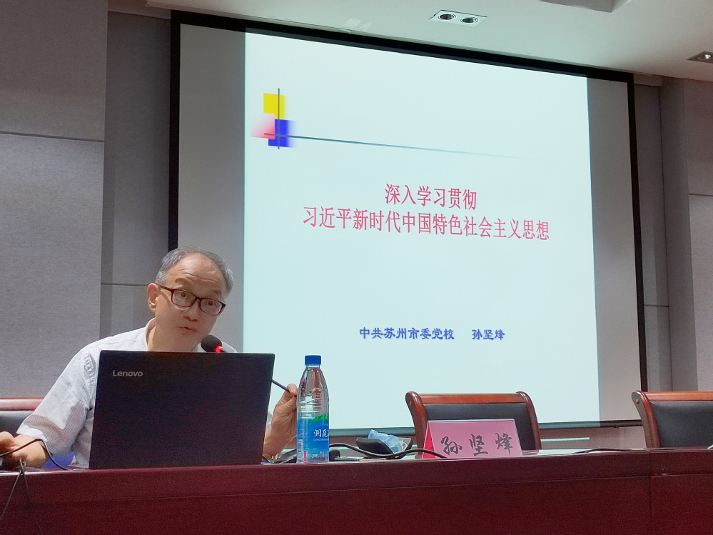 为深入学习贯彻党的二十大精神,推动学习贯彻习近平新时代中国特色社会主义思想主题教育走深走实,根据学院党委主题教育工作部署,5月31日下午,学院邀请苏州市委党校一级调研员、原副校长孙坚烽讲授主题教育专题党课。全体教职工党员、学生党支部支委成员和发展对象参加了学习。专题党课由学院党委书记袁冬梅主持。