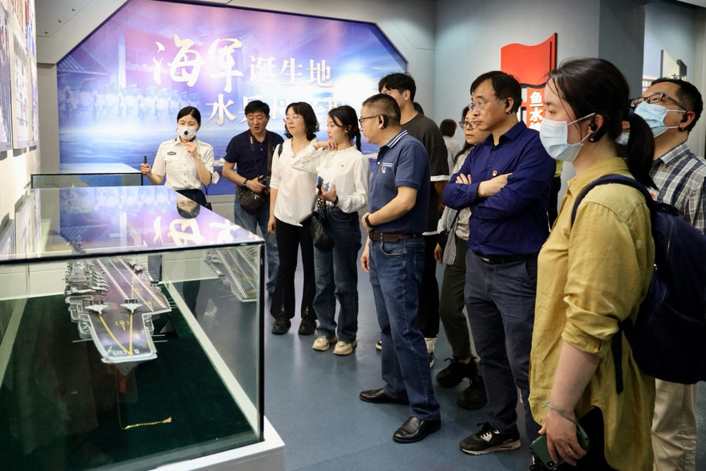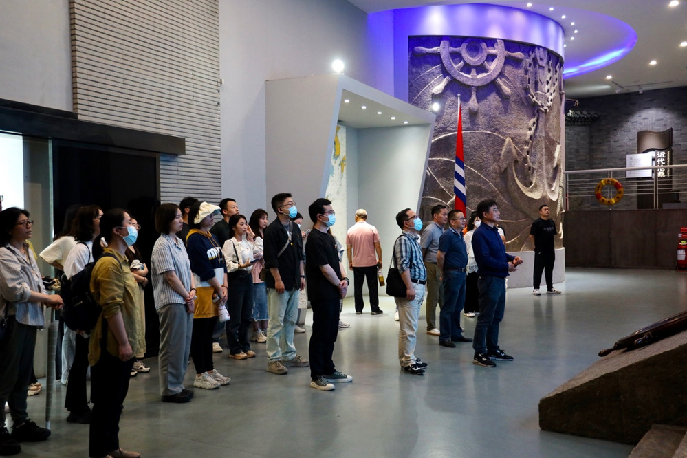 为进一步推进学习贯彻习近平新时代中国特色社会主义思想主题教育,深入学习贯彻党的二十大精神,坚持不懈用习近平新时代中国特色社会主义思想凝心铸魂,切实加强党的思想建设,引导全体党员强化使命担当,5月27日,传媒学院党委书记宁正法,党委副书记、副院长丁姗,副院长黄艳凤,专职组织员丁新红,学院教工党支部、学生党支部书记及支委一行赴江阴渡江战役纪念馆与中国人民解放军海军诞生地纪念馆开展主题教育。