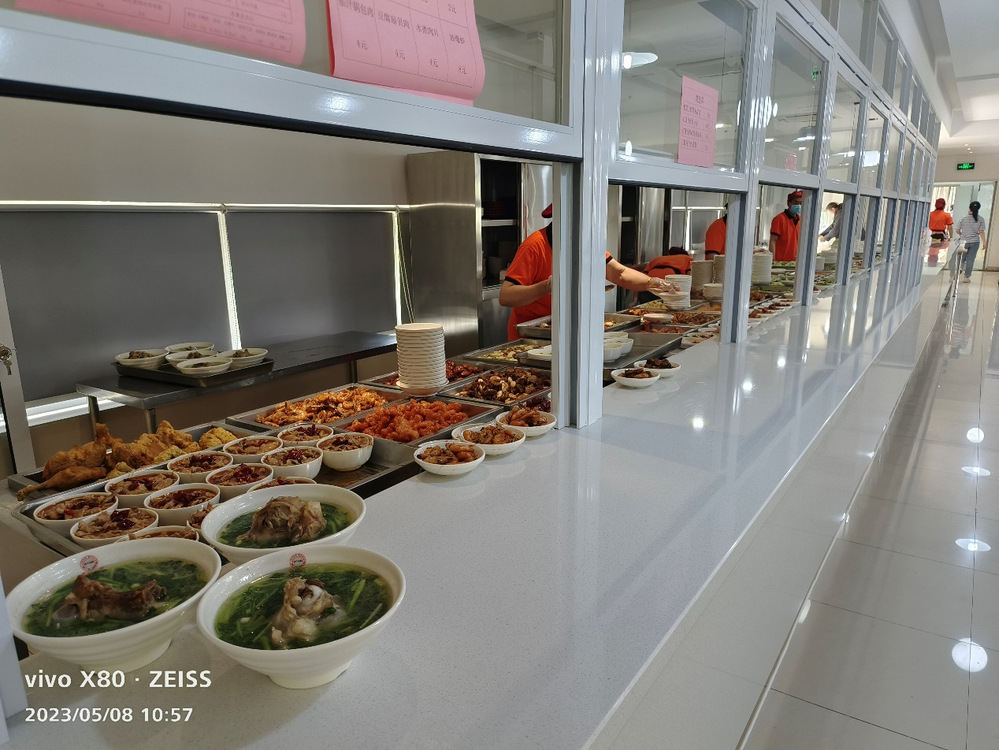 经过20天调研和筹备,802教工餐厅北大厅供餐窗口于5月4日“暖心”上线。新增北大厅餐线,采用自选快餐模式供应午餐,菜品主打营养健康,有大荤、小荤、蔬菜、特色菜、酸奶、粗粮、点心等,以满足不同口味需求,后期还将陆续推出更多风味品种供老师们选择。