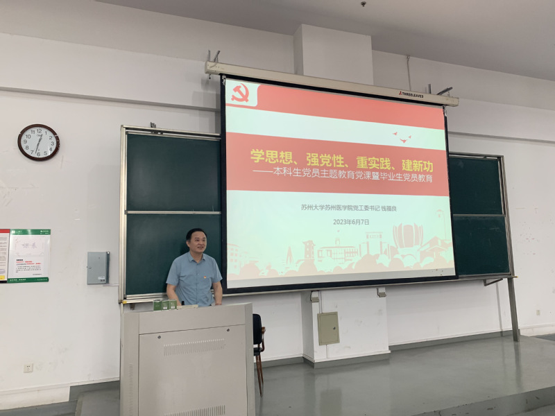六月苏城、绿树荫浓,2023届毕业生满载收获与喜悦,挥别钟楼草坪、方塔晨辉,将开启新的人生旅途,书写新的华彩篇章。为了提升毕业生党员的使命担当,医学院党工委6月7日下午举办了“学思想、强党性、重实践、建新功”主题教育党课,由医学院党工委书记钱福良主讲,毕业生党员离校前再接受了一次理想信念教育。