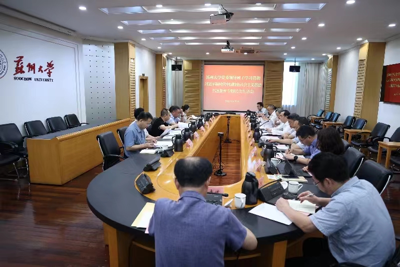 就进一步推动主题教育走深走实、写好民主生活会“后半篇文章”,胡敏强强调,苏州大学党委领导班子要坚持用习近平新时代中国特色社会主义思想凝心铸魂,在全面系统学、融会贯通悟、知行合一用上久久为功;要持续抓好查摆问题的整改落实,推动系统梳理全面改、专项整治深入改、深入群众开门改;要切实把主题教育成果转化为推动高质量发展的强大动力,认真做好总结收尾工作,抓好建章立制,注重学习成果转化,确保主题教育善始善终,以新气象新作为推动学校高质量发展取得新成效。
